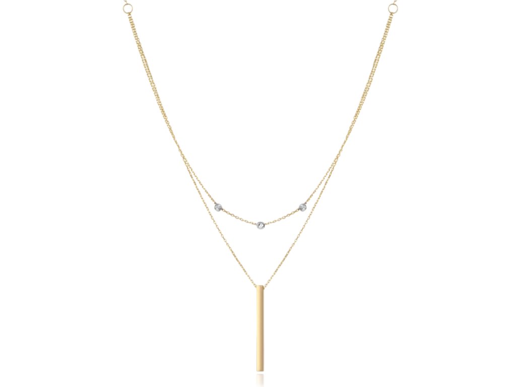 MINET Zlatý dvojitý náhrdelník s tyčkou a kuličkami z bílého zlata Au 585/1000 2,25g