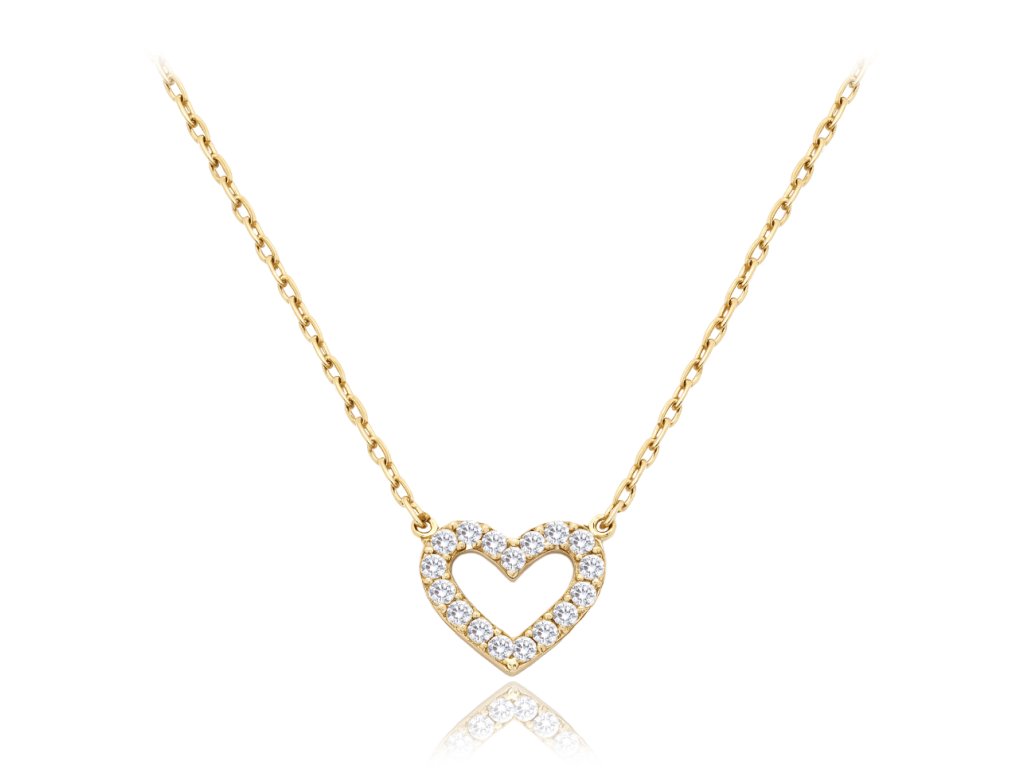 MINET Zlatý náhrdelník srdce s bílými zirkony Au 585/1000 1,65g