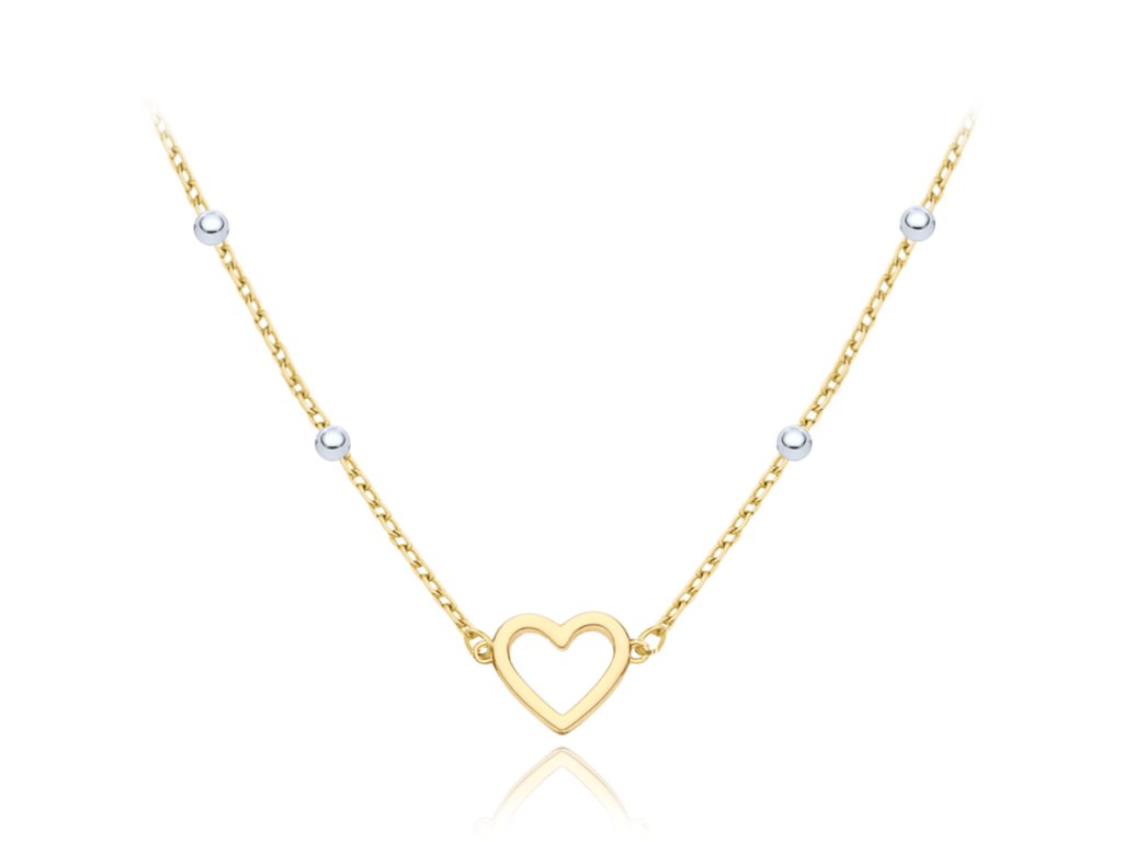 MINET Zlatý náhrdelník srdíčko a kuličky v kombinaci bílého a žlutého zlata Au 585/1000 1,60g