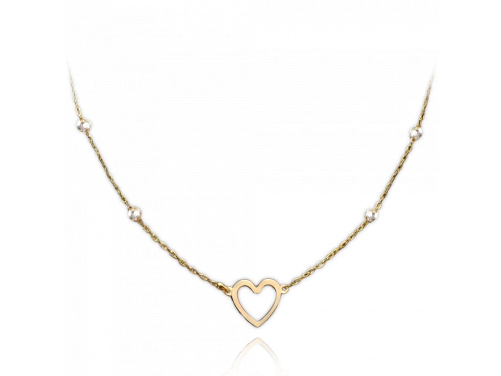 MINET Zlatý náhrdelník srdíčko v kombinaci bílého a žlutého zlata Au 585/1000 1,30g