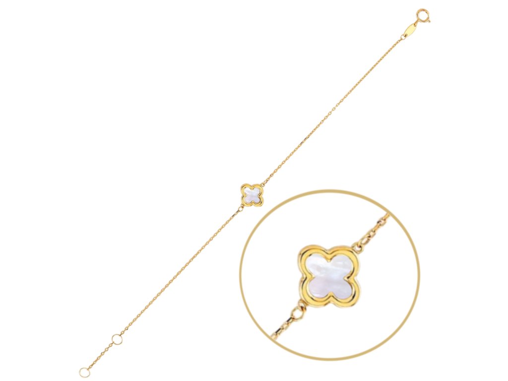 MINET Zlatý náramek čtyřlístek s bílou perletí Au 585/1000 0,95g