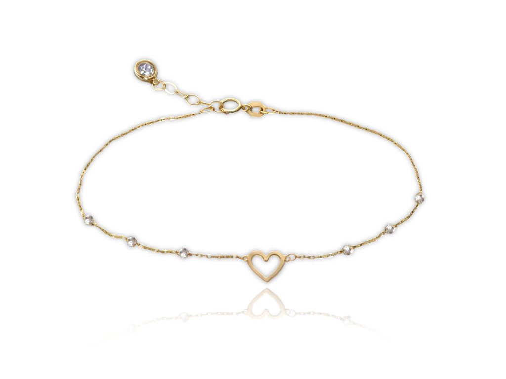 MINET Zlatý náramek srdíčko a kuličky v kombinaci bílého a žlutého zlata Au 585/1000 1,05g
