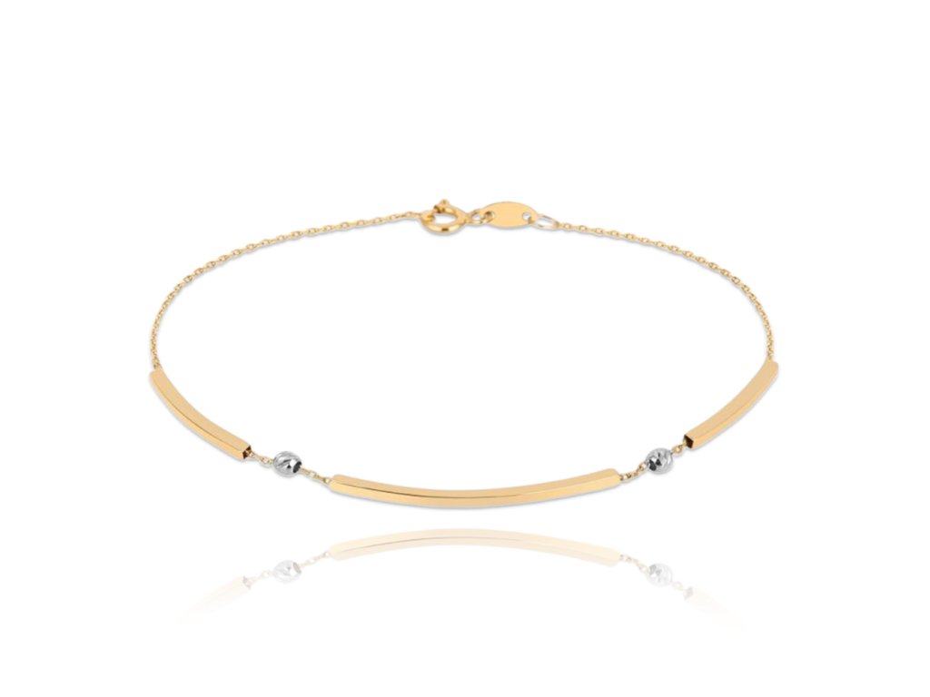 Elegantní náramek je vyrobený z pravého 14karátového zlata. Předností náramku je kombinace žlutého zlata a kuliček z bílého zlata.