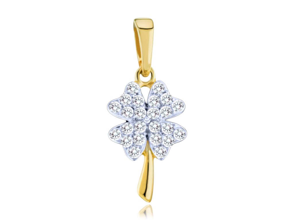 MINET Zlatý přívěs čtyřlístek s bílými zirkony Au 585/1000 0,60g