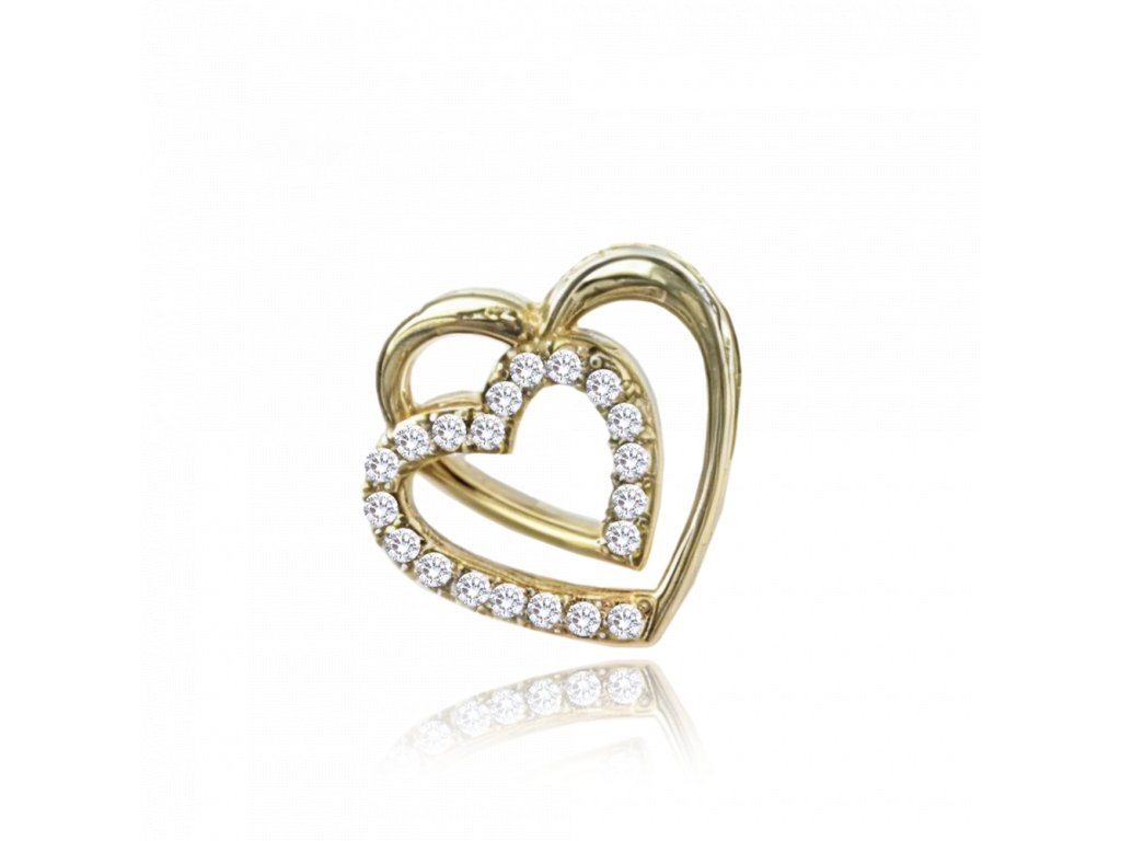 MINET Zlatý přívěs dvojité srdíčko s bílými zirkony Au 585/1000 0,85g
