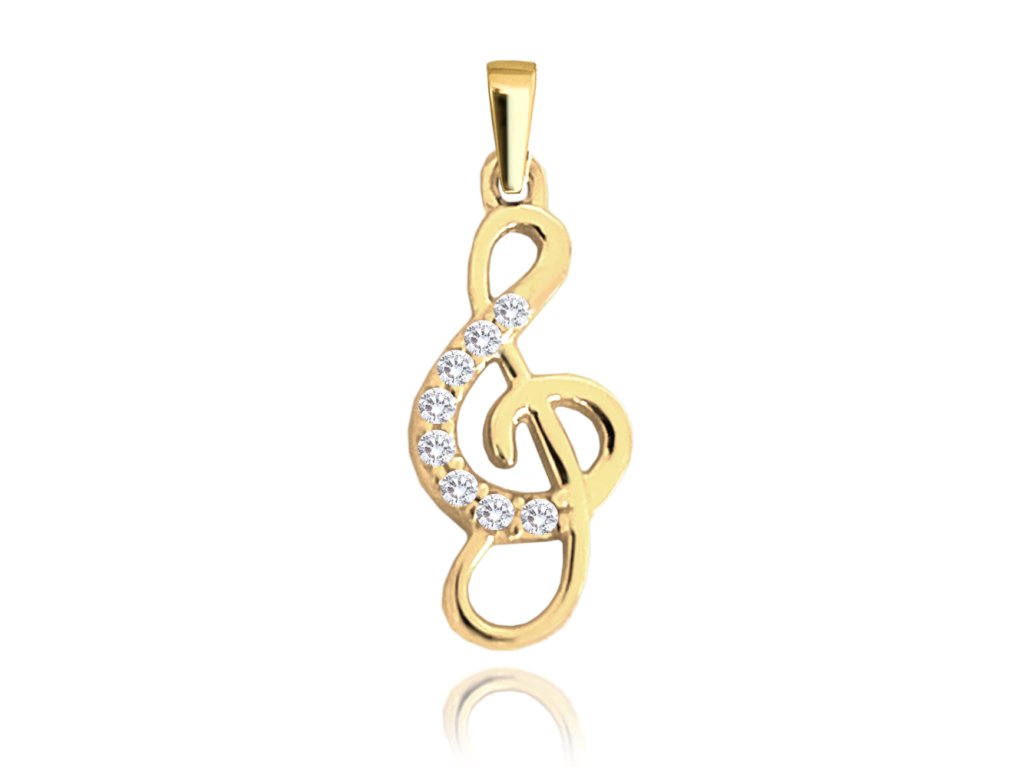 MINET Zlatý přívěs houslový klíč s bílými zirkony Au 585/1000 1,05g