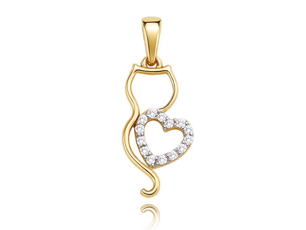 MINET Zlatý přívěs kočka se srdíčkem s bílými zirkony Au 585/1000 0,70g