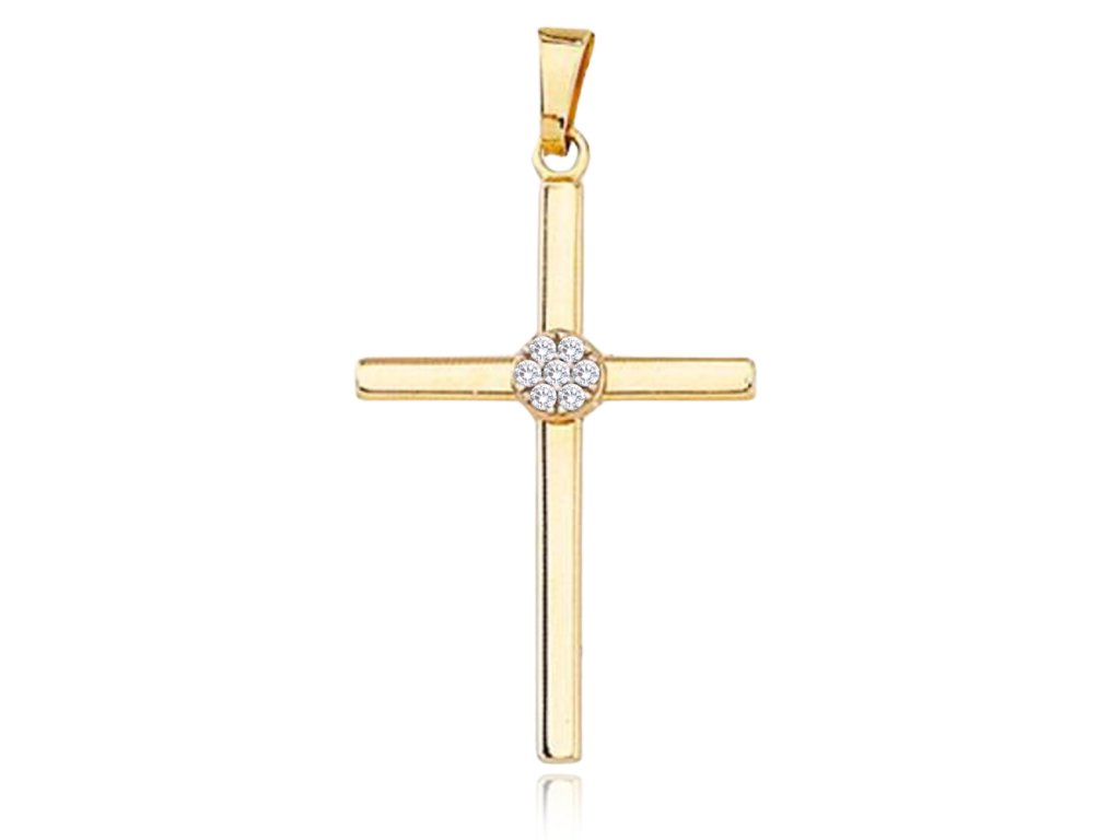 MINET Zlatý přívěs křížek s bílými zirkony Au 585/1000 1,05g