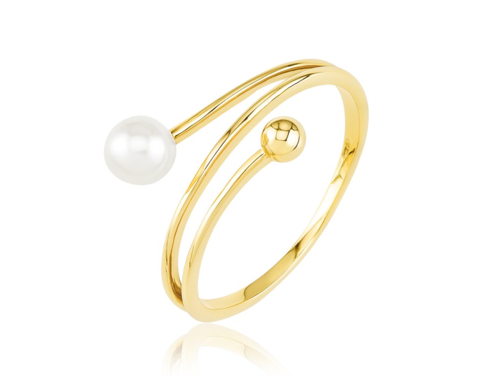 MINET Zlatý prsten s kuličkou a přírodní perlou Au 585/1000 vel. 59 - 1,75g