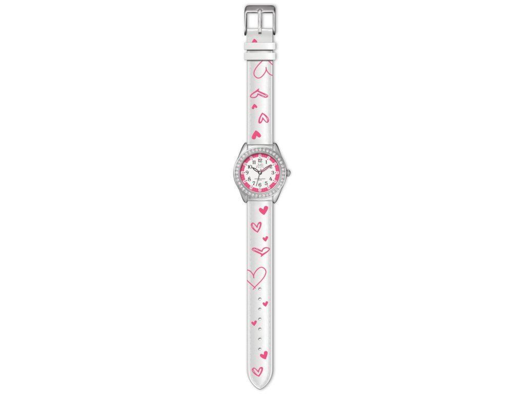 Náramkové hodinky v krásných barvách a s motivem srdíčka na řemínku. Výborně čitelný číselník je vhodný pro děti, které se právě učí znát čas.