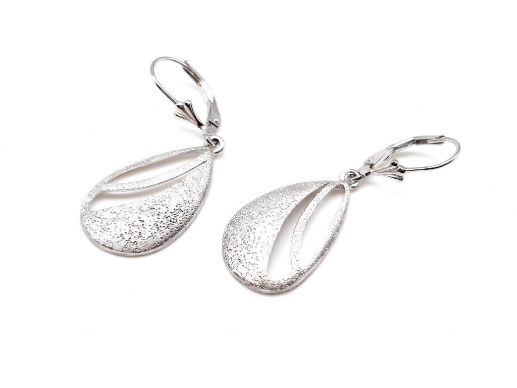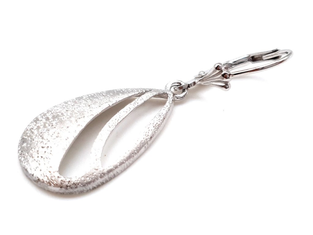 Netradiční dlouhé visací náušnice v matné úpravě.