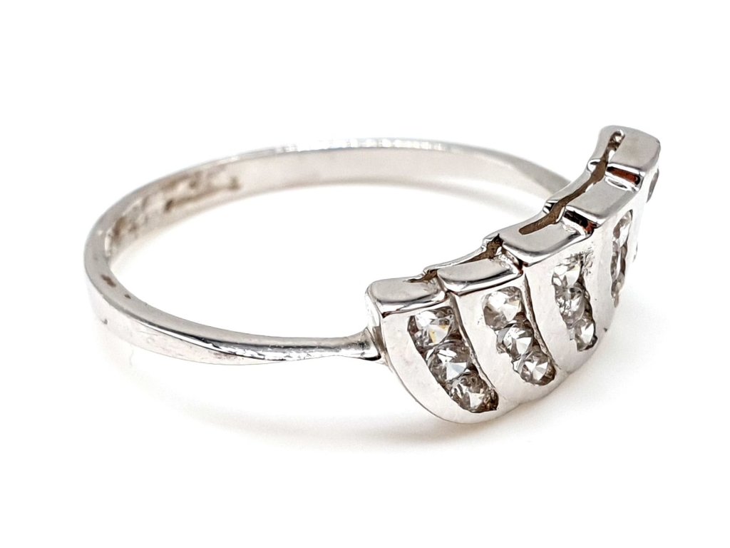 Netradiční prsten z bílého zlata. Ryzost 585/1000.
