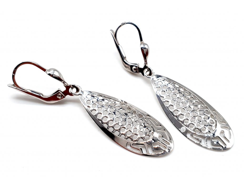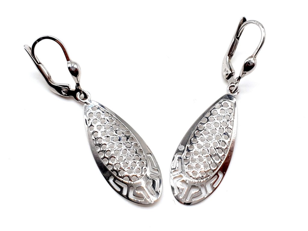 Netradiční visací náušnice z bílého zlata. Ryzost 585/1000.