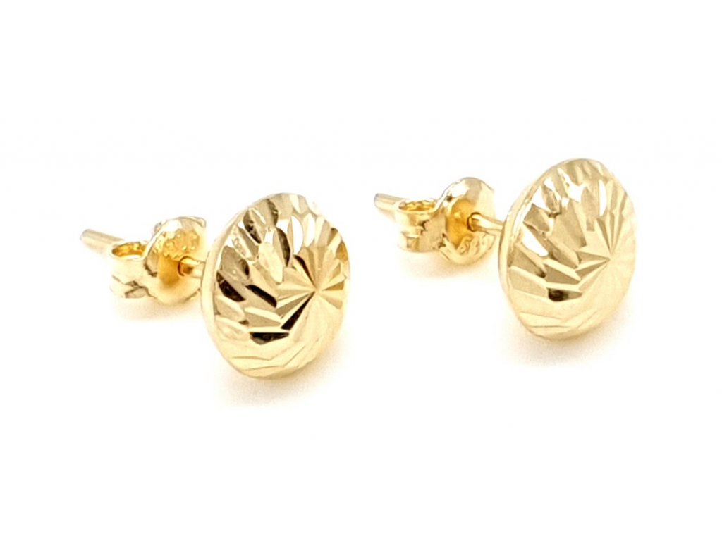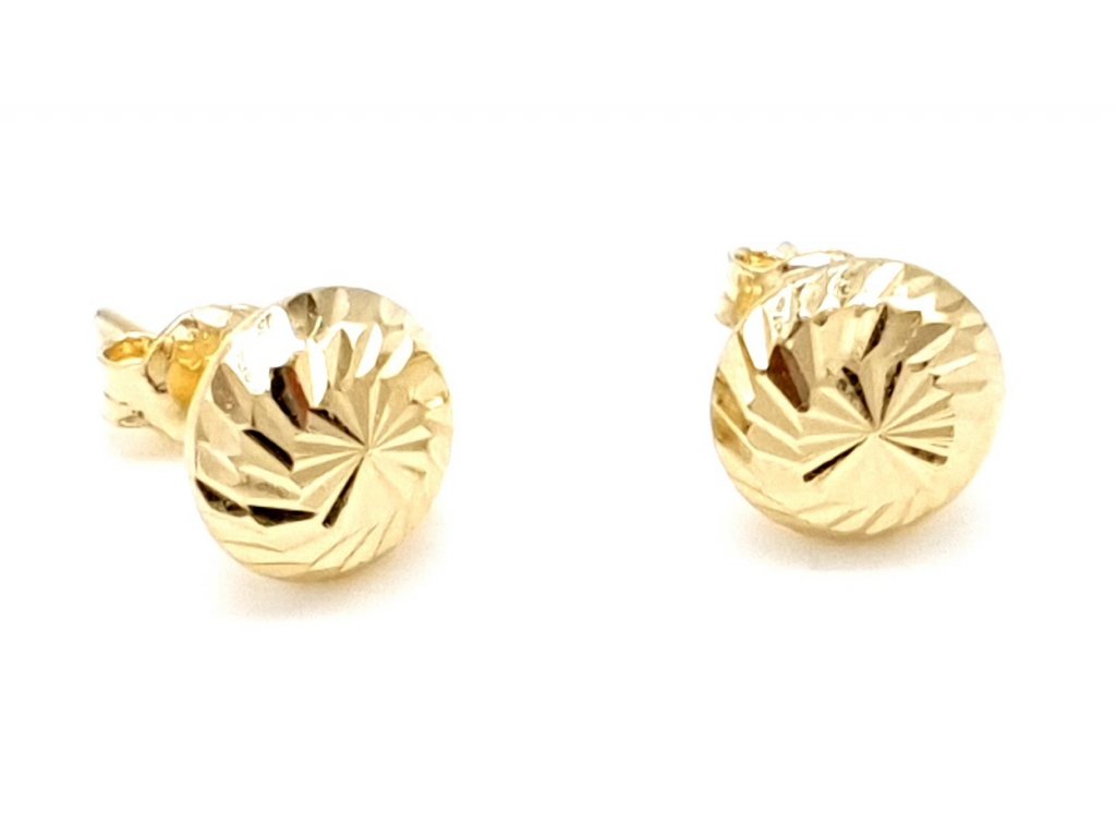 Netradiční zlaté náušnice ze žlutého zlata na puzetu.