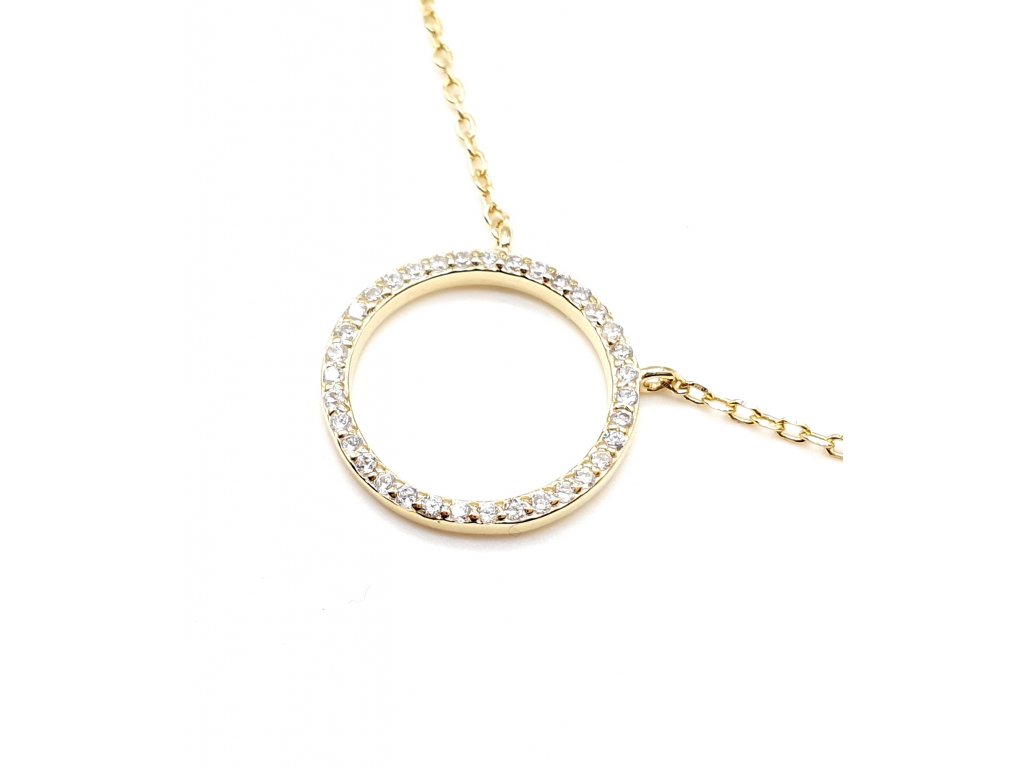 Polacený stříbrný řetízek s přívěskem v halo stylu posetý zirkony.Vyrobený z pozlaceného rhodiovaného stříbra.