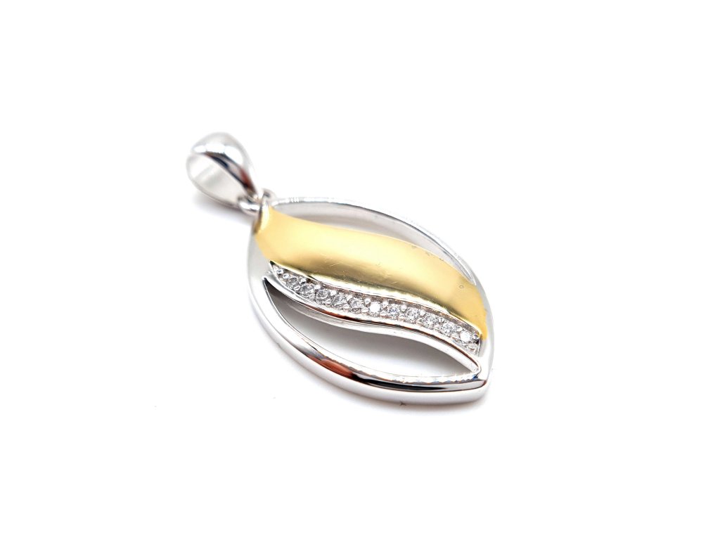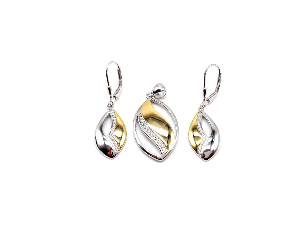 Krásná statement stříbrná kolekce s pozlacenými detaily a liniemi zirkonů. Visací náušnice krásně zvýrazní obličej a přívěsek jakýkoliv dekolt.