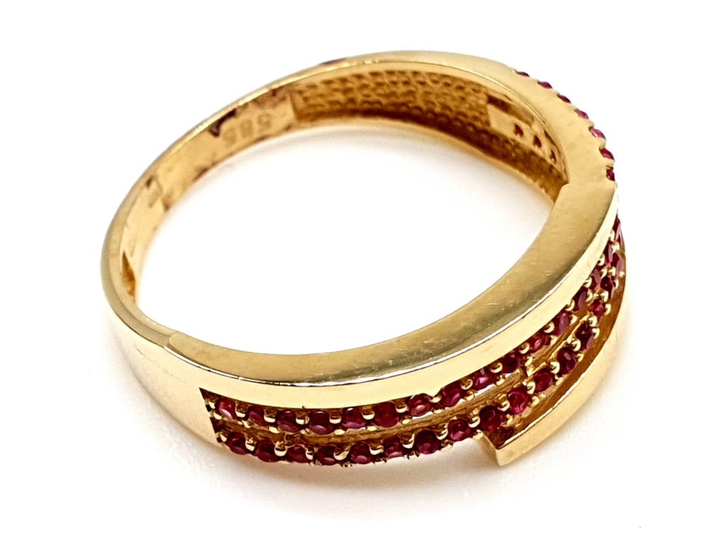 Prsten ze žlutého zlata ozdobený rudými zirkony