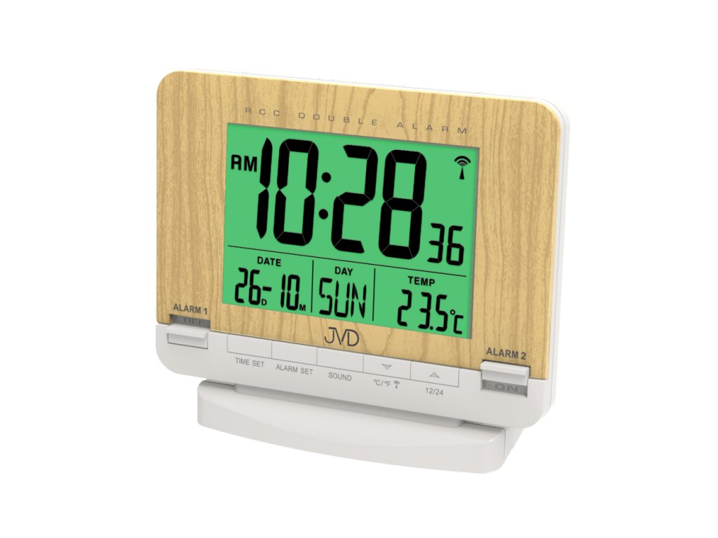 Rádiem řízený budík s podsvíceným displejem,