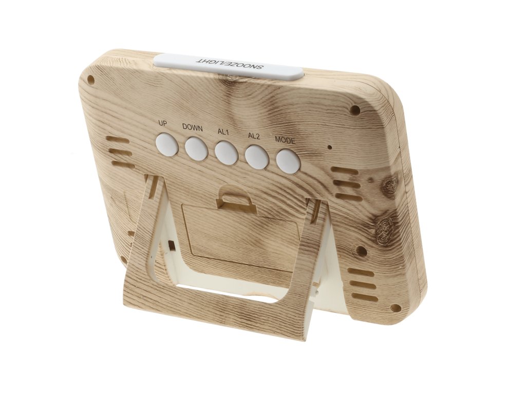 | Speciální funkce: | Budík, Datum (kalendář), Opakování zvonění 5 min., Osvětlení, 12-ti nebo 24-hodinový denní režim, Rádiem řízený čas z Frankfurtu n. M. (RCC), Teploměr, budík 2x |