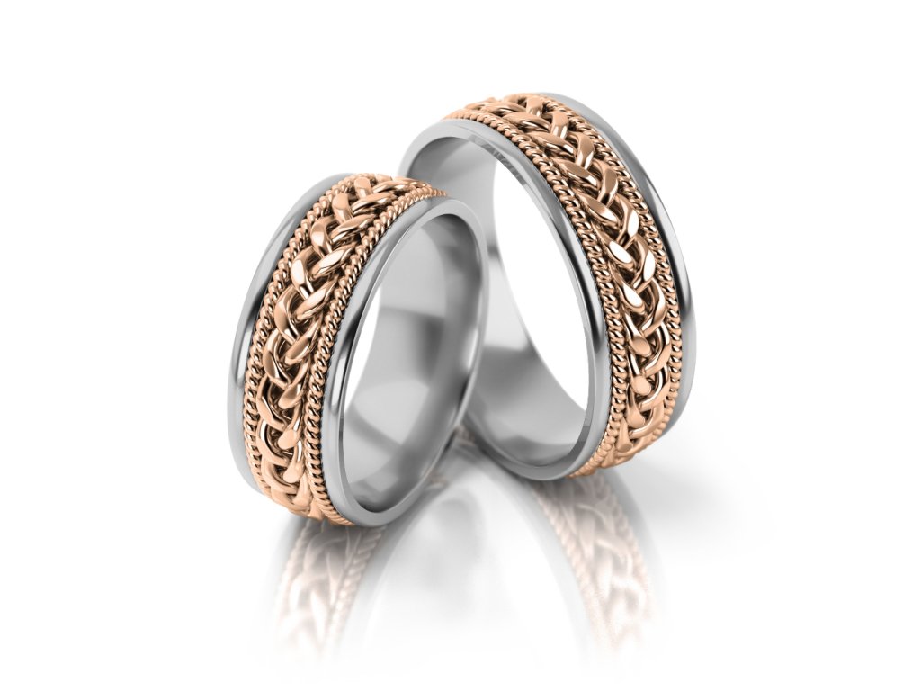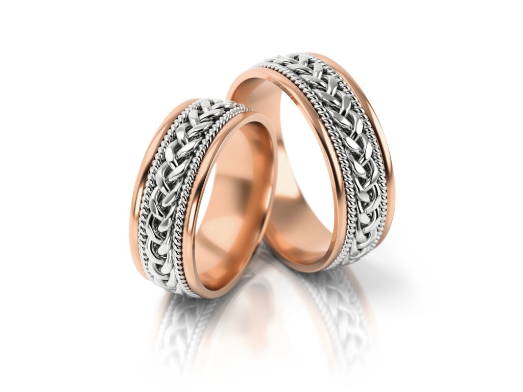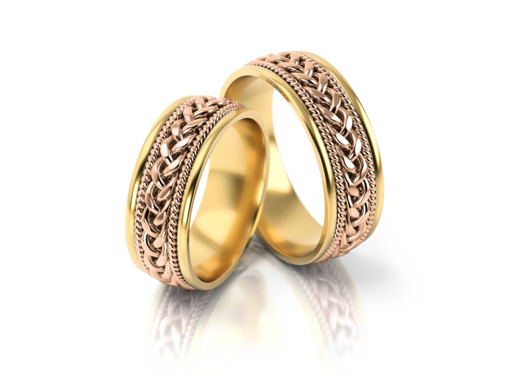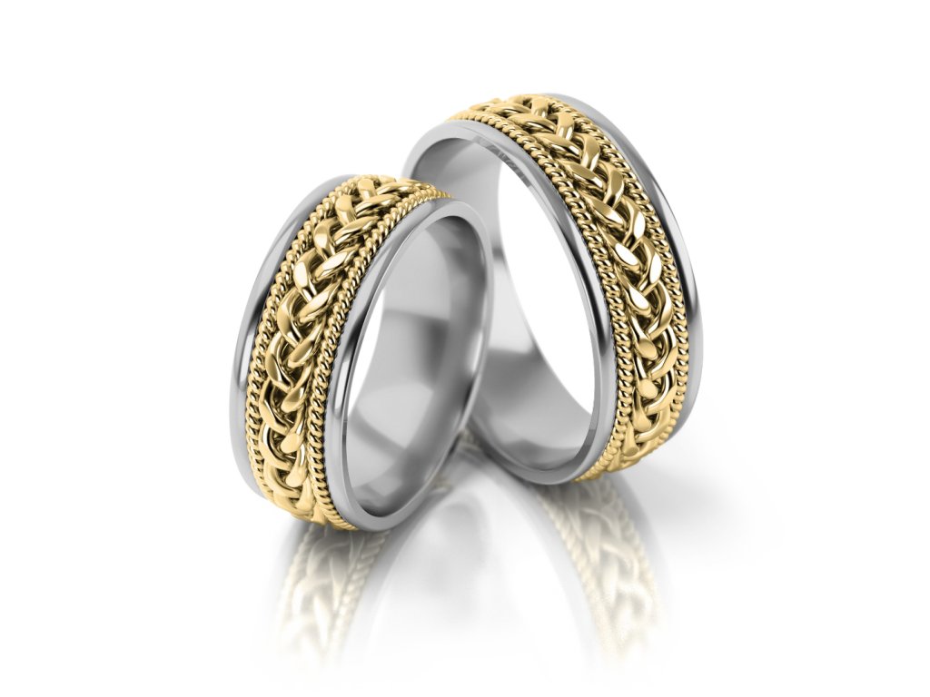 Snubní prsteny pro nevěstu a ženicha jsou z kombinace zlata ryzosti 585/1000 a doplňuje je lesklé provedení.