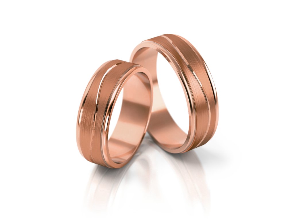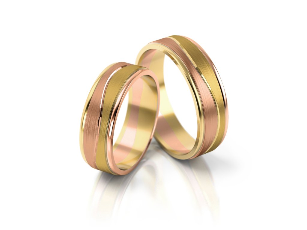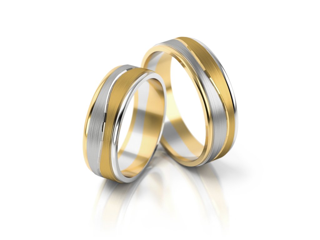 Snubní prsteny pro nevěstu a ženicha jsou z kombinace zlata ryzosti 585/1000 a doplňuje je lesklé/matné provedení.