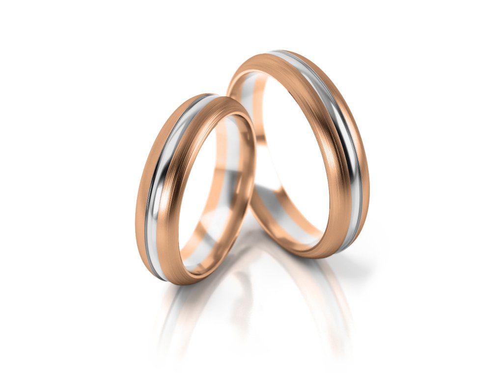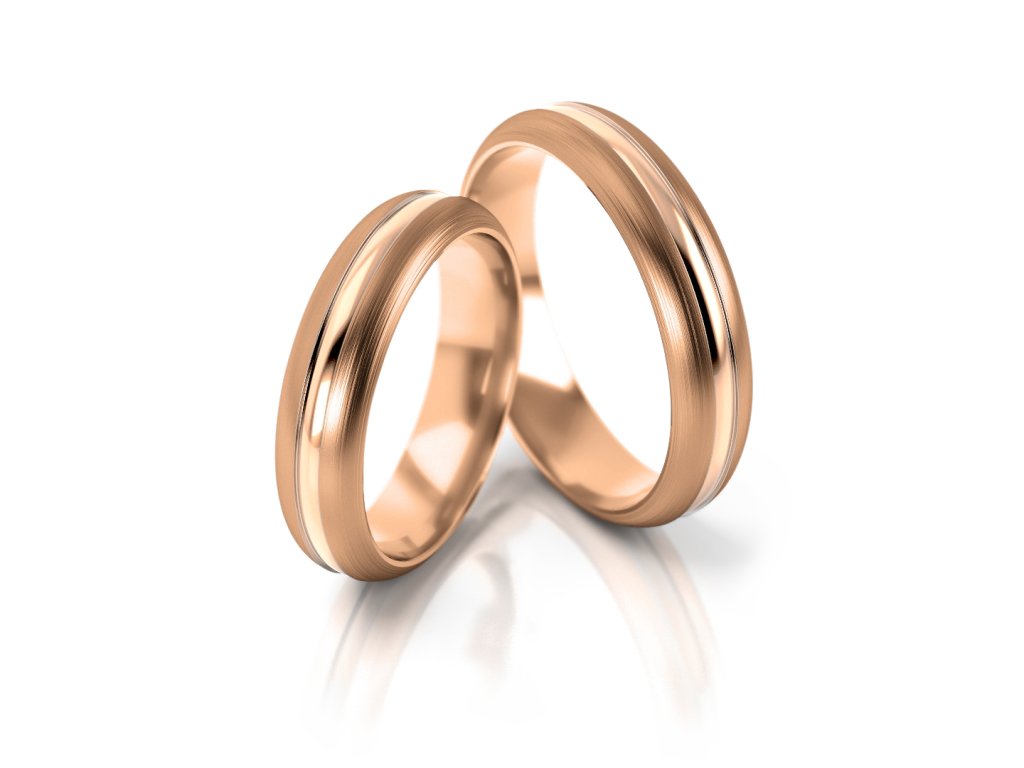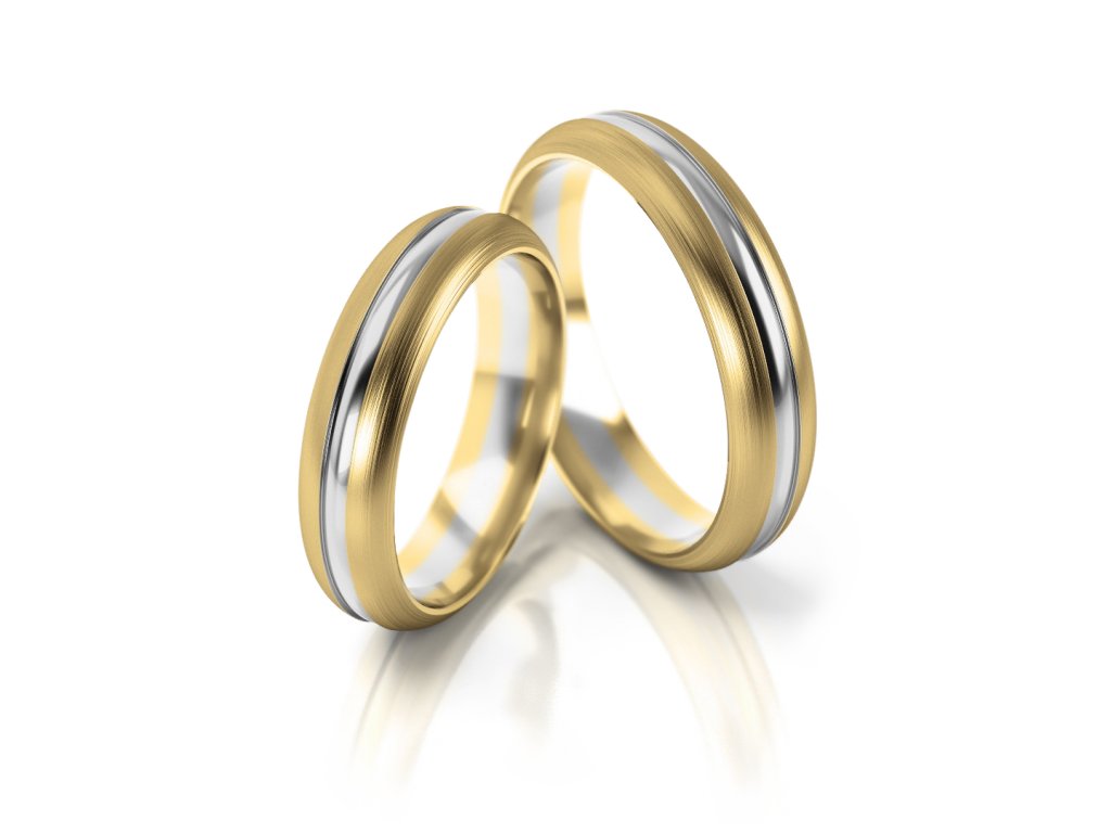 Snubní prsteny pro nevěstu a ženicha jsou ze zlata ryzosti 585/1000. Prsten z kombinace zlata doplňuje lesklé – matné provedení.