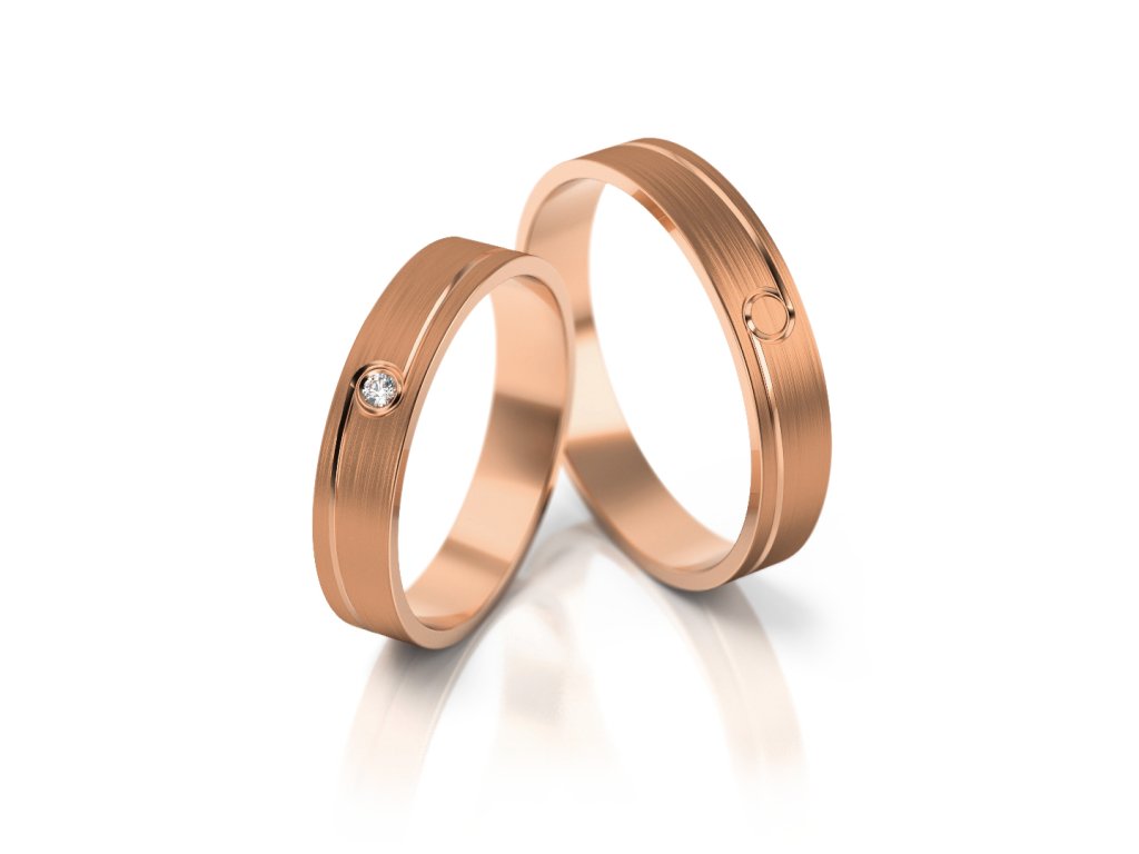 Snubní prsteny pro nevěstu a ženicha jsou ze zlata ryzosti 585/1000. Prsten ze žlutého zlata doplňuje matné/lesklé provedení. Dámský prstýnek je rozzářen kamínkem ve středu kroužku.