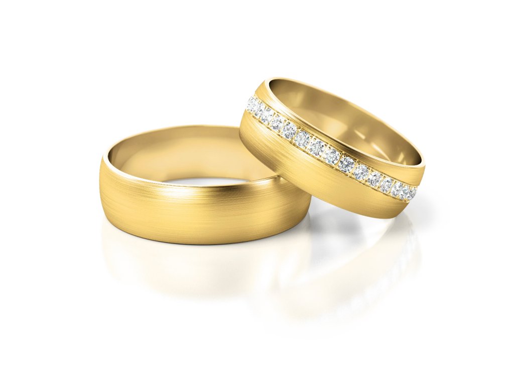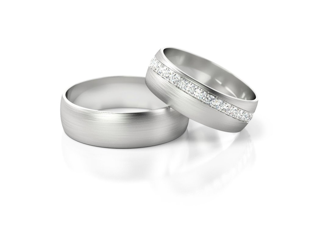 Masivní snubní prsteny mohou vypadat lehce a jednoduše. Dáma by ráda dodala matnému povrchu trochu lesku? Drobné zářivé kamínky po celém obvodu prstenu tento úkol s přehledem splní.