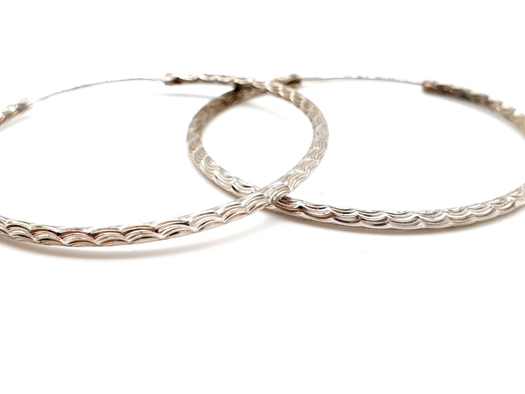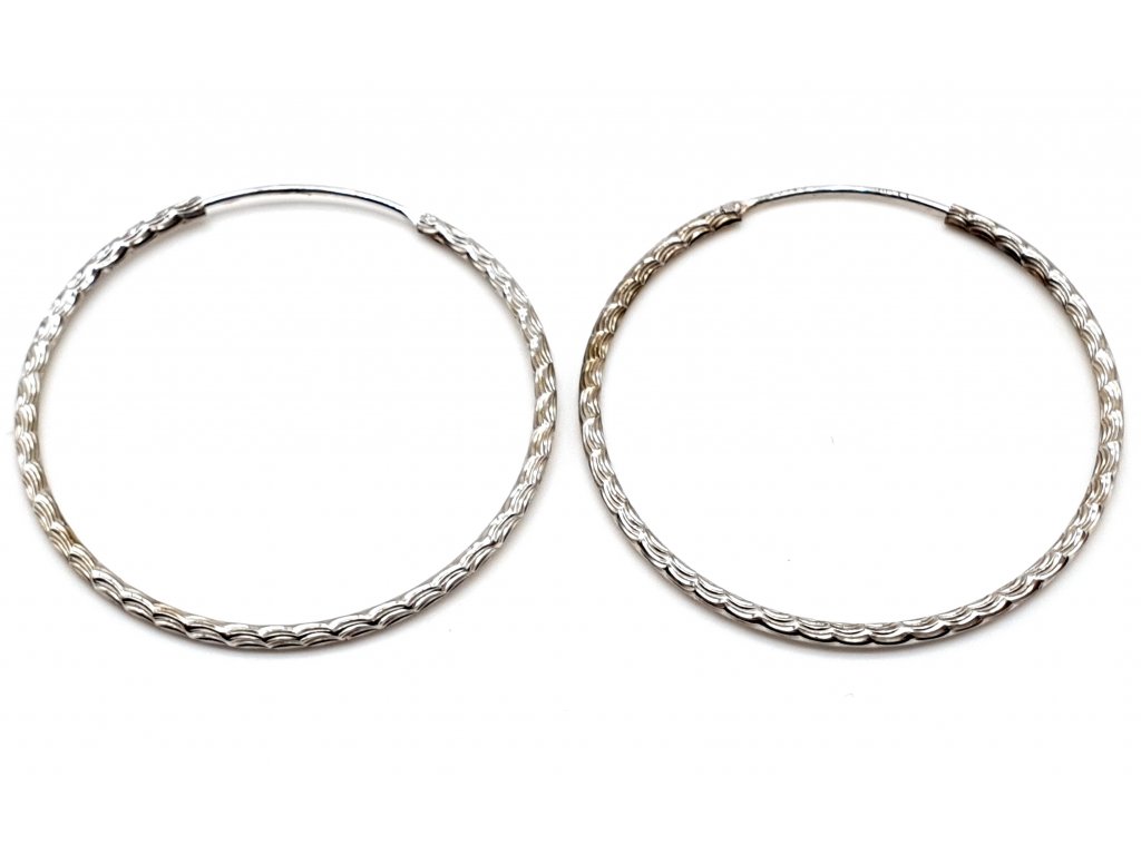 Stříbrné kruhové náušnice se zdobným reliéfem - 4cm. Materiál Ag 925/1000.