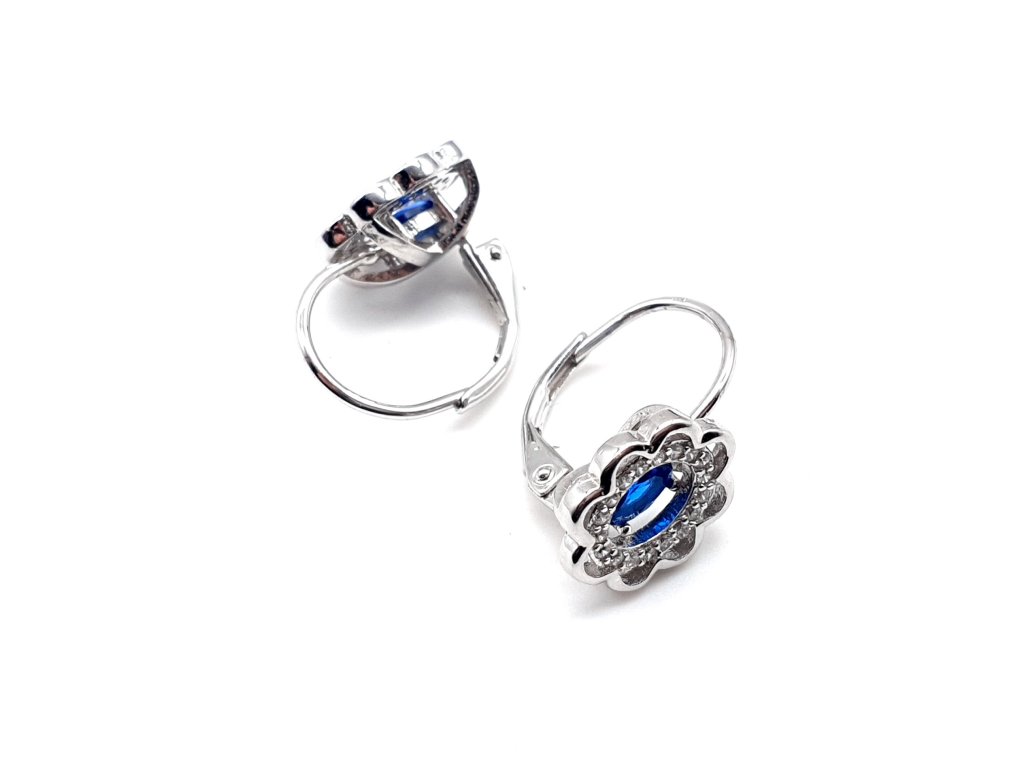 Stříbrné náušnice ve tvaru květiny s dominantním modrým kamenem