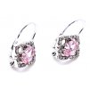 Stříbrné náušnice ve tvaru květiny zdobené zirkony s růžovým kamenem