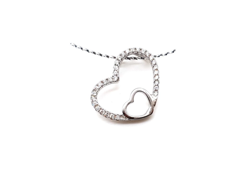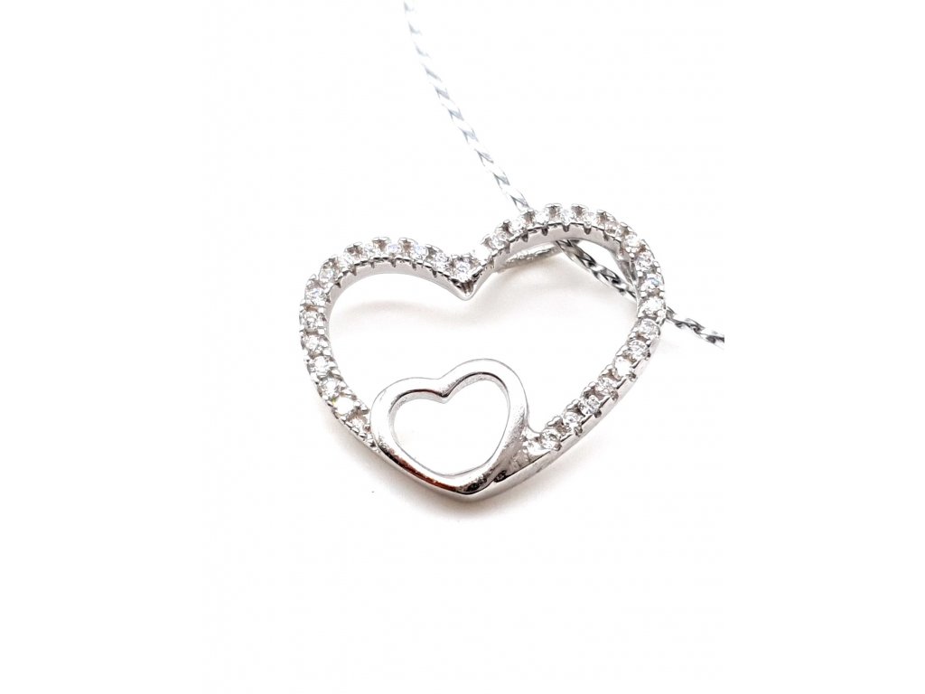 Stříbrný přívěsek - velké srdce s malým srdcem zdobeným zirkony