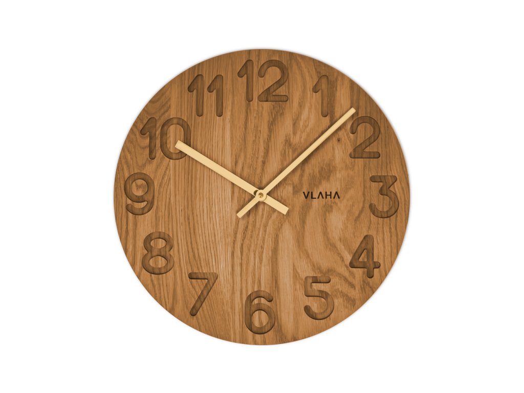 VLAHA Dřevěné hodiny OAK vyrobené v Čechách se zlatými ručkami ⌀34cm