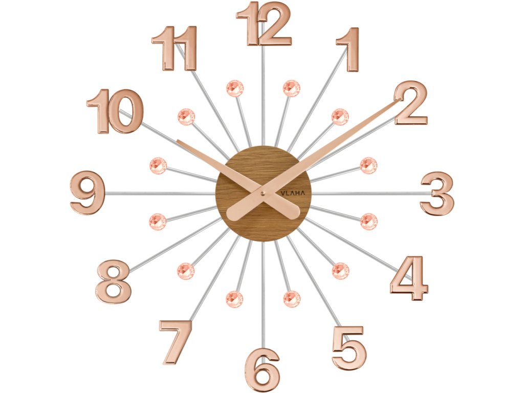 VLAHA Dřevěné Rosegold hodiny s kameny DESIGN vyrobené v Čechách ⌀49cm