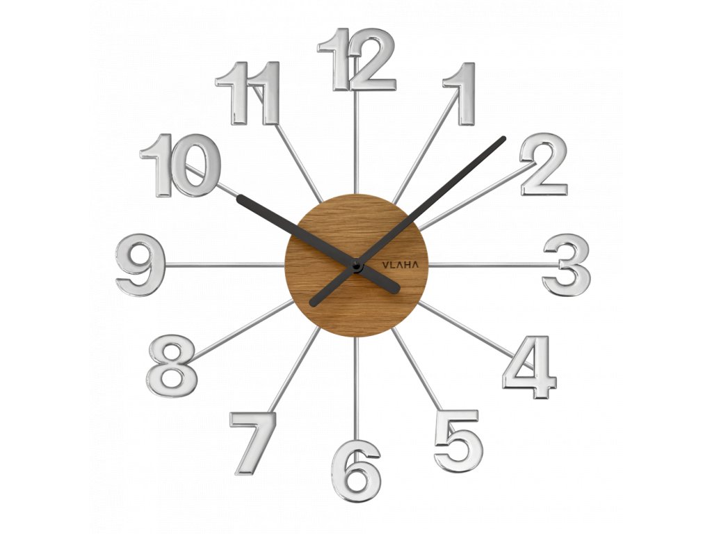VLAHA Dřevěné stříbrné hodiny DESIGN vyrobené v Čechách s černými ručičkami ⌀42cm