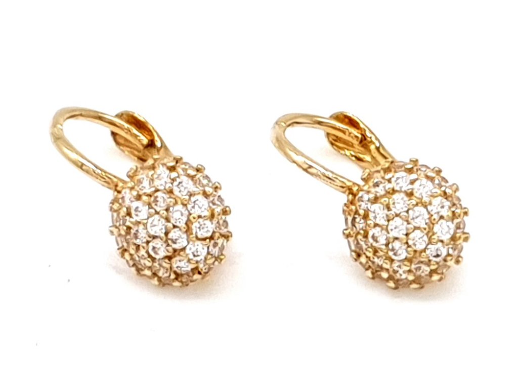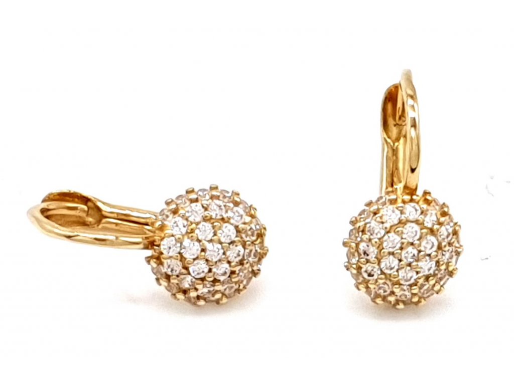 Zlaté náušnice na klasické zapínání zdobené zirkony