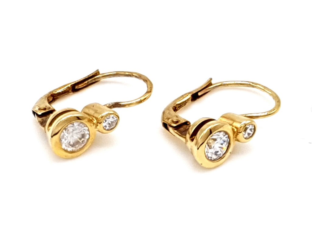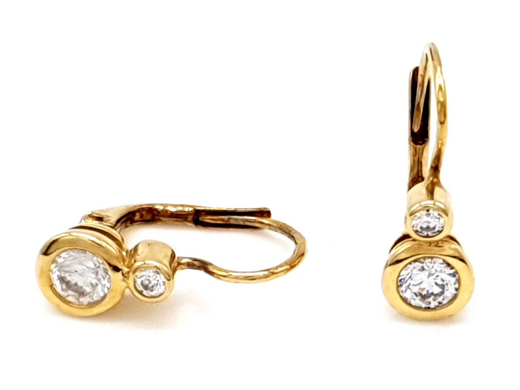 Zlaté náušnice na klasické zapínání zdobené zirkony