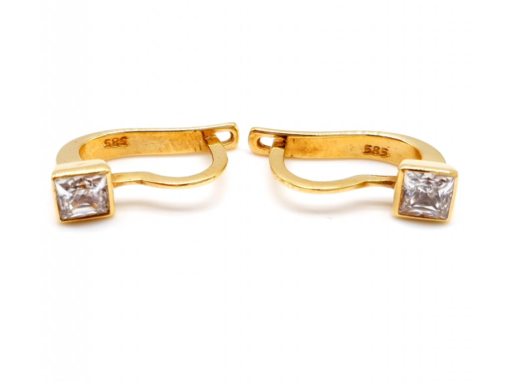 Zlaté náušnice ve čtvercovém designu. Vyrobené ze žlutého zlata 585/1000.