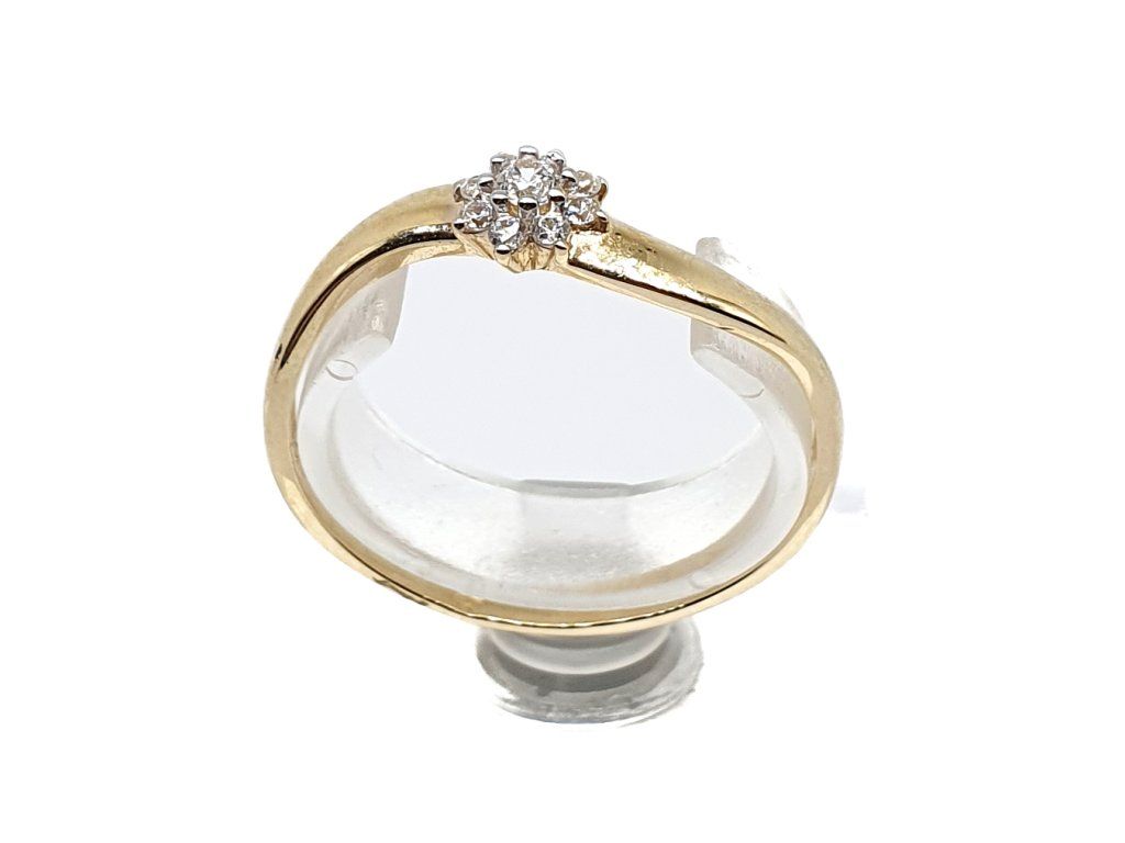 Zlatý 14kt prsten s jemným zirkonovým květem