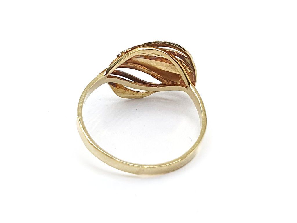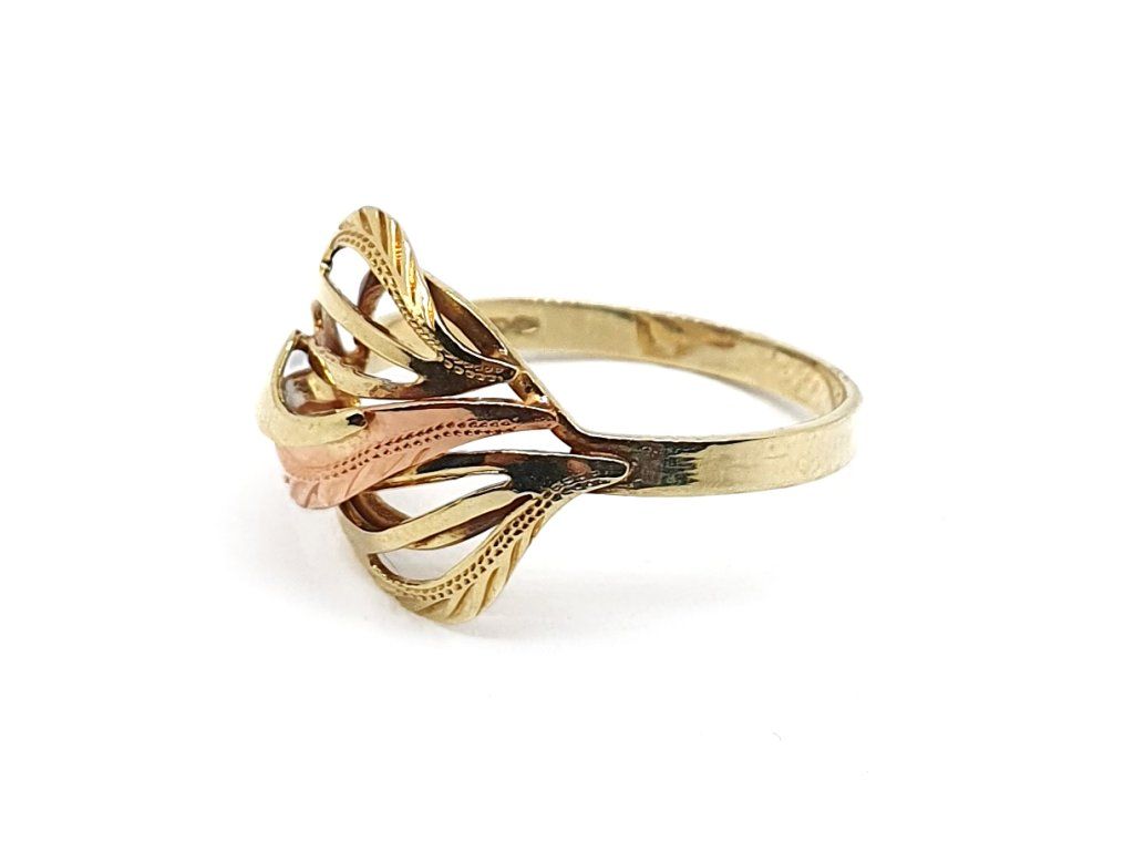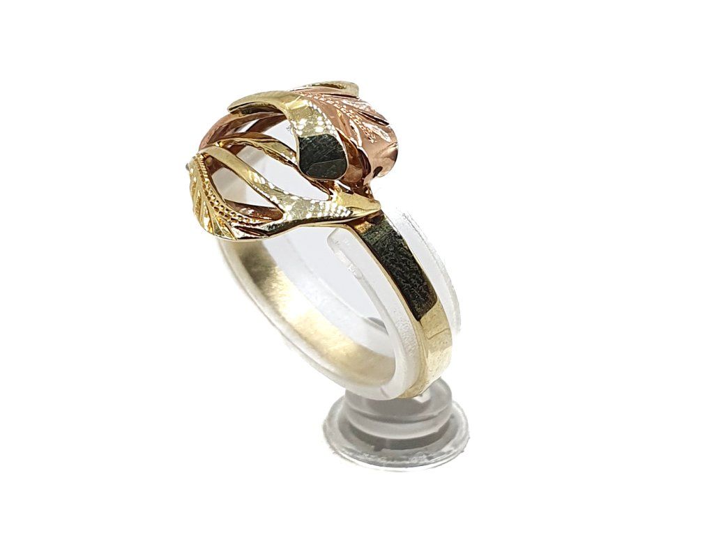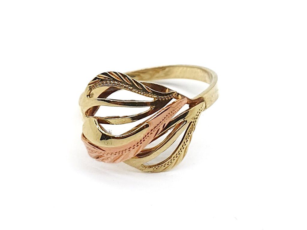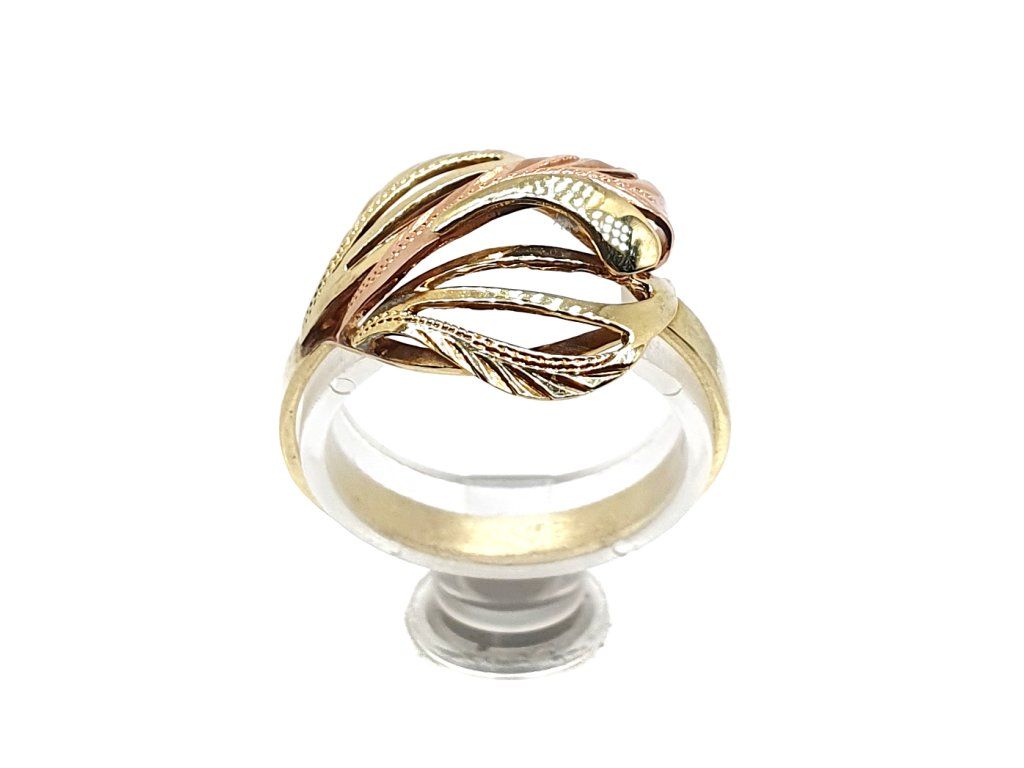 Zlatý 14kt prsten s motivem proplétaných listů – trojbarevné zlato