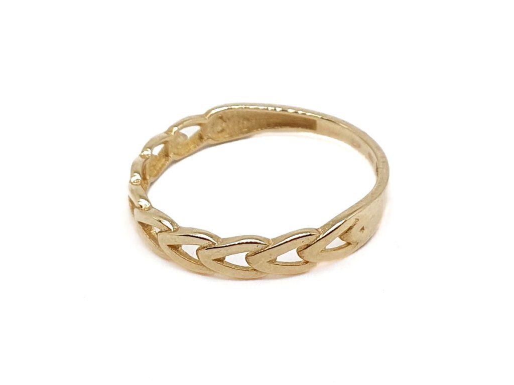 Zlatý 14kt prsten s proplétaným vzorem copánek
