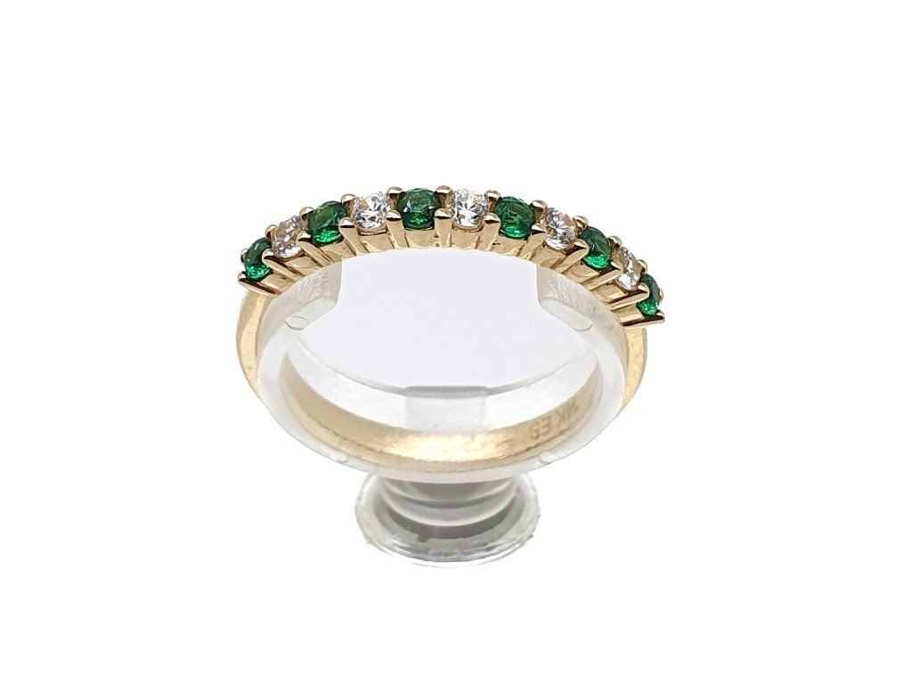 Zlatý 14kt prsten s rubínově červeným kamenem a zirkony