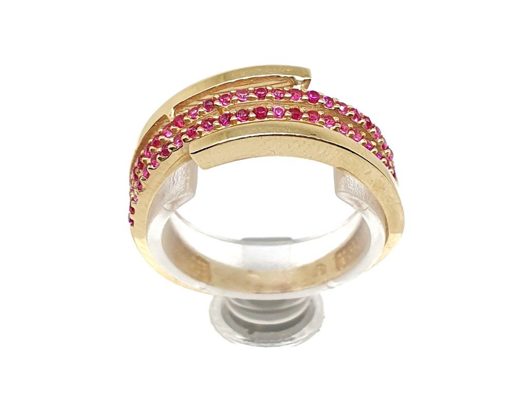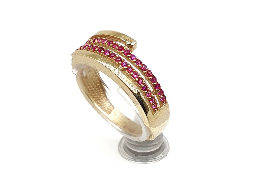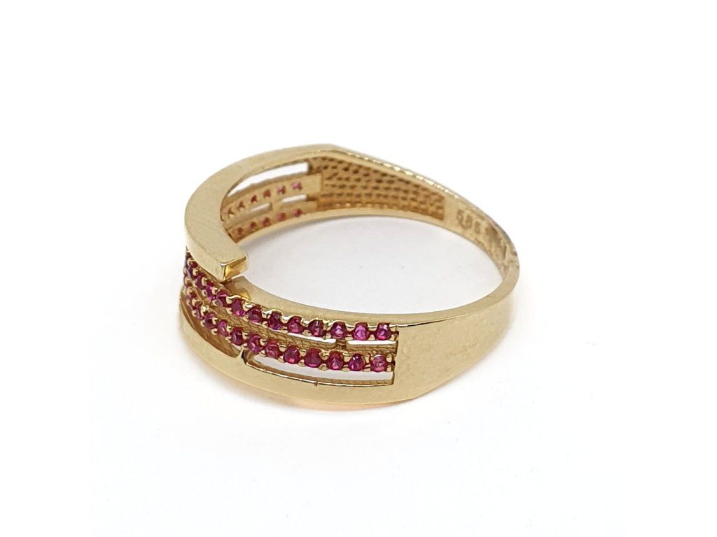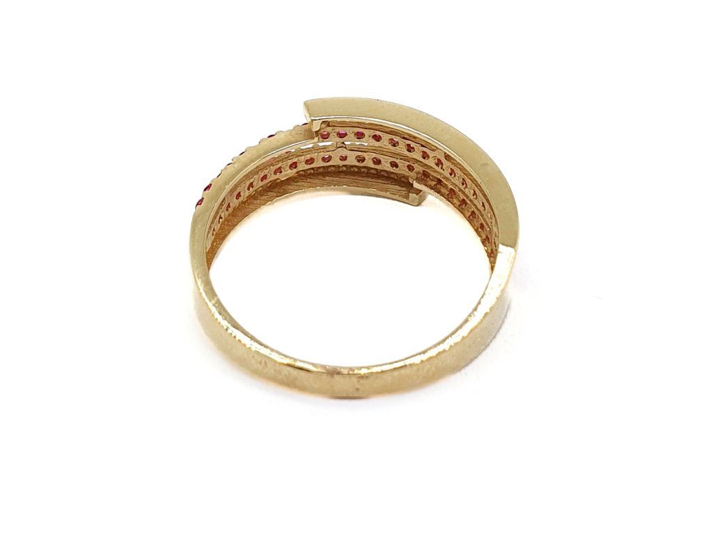 Zlatý 14kt prsten s rubínově červenými zirkony