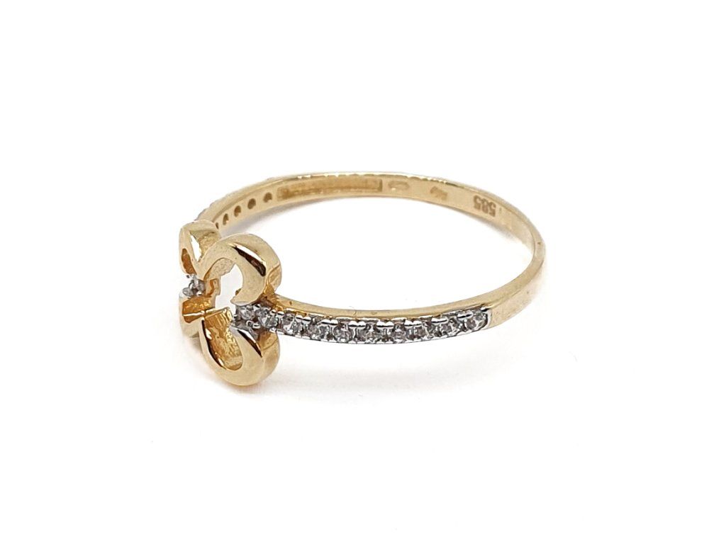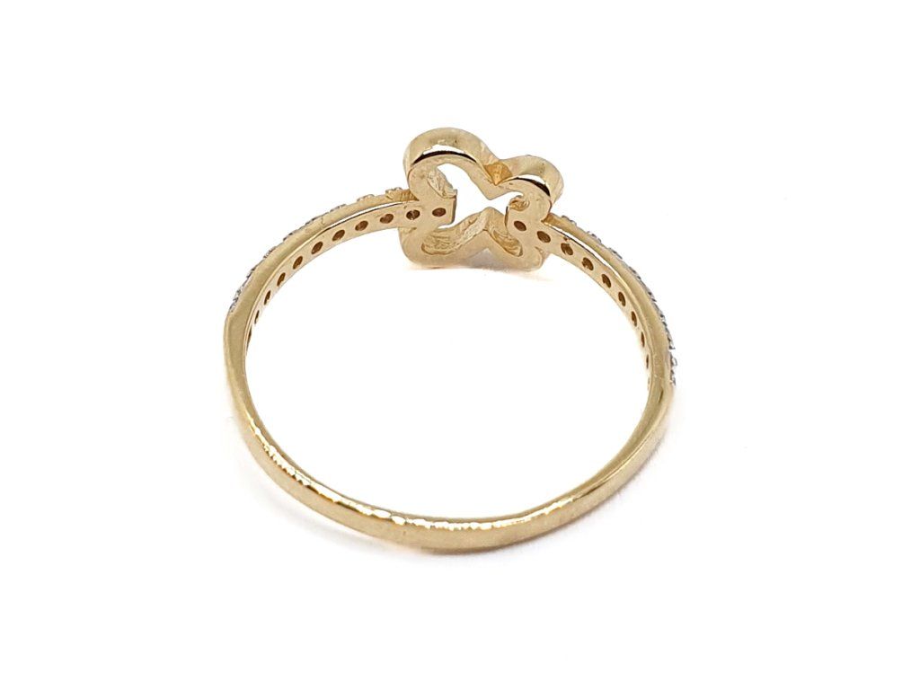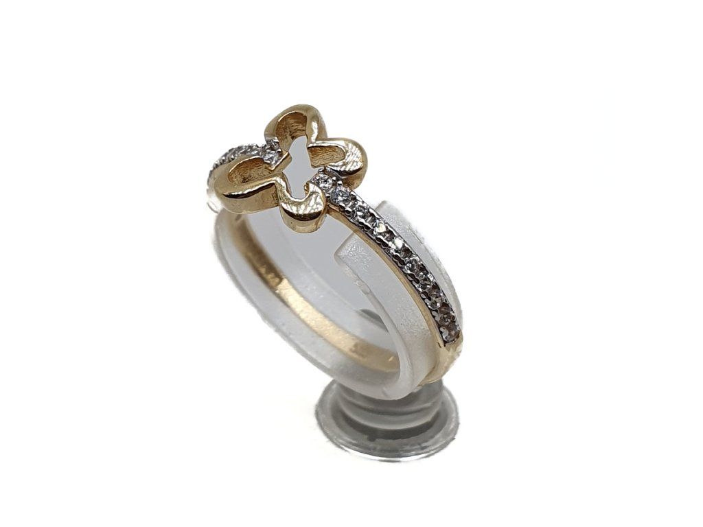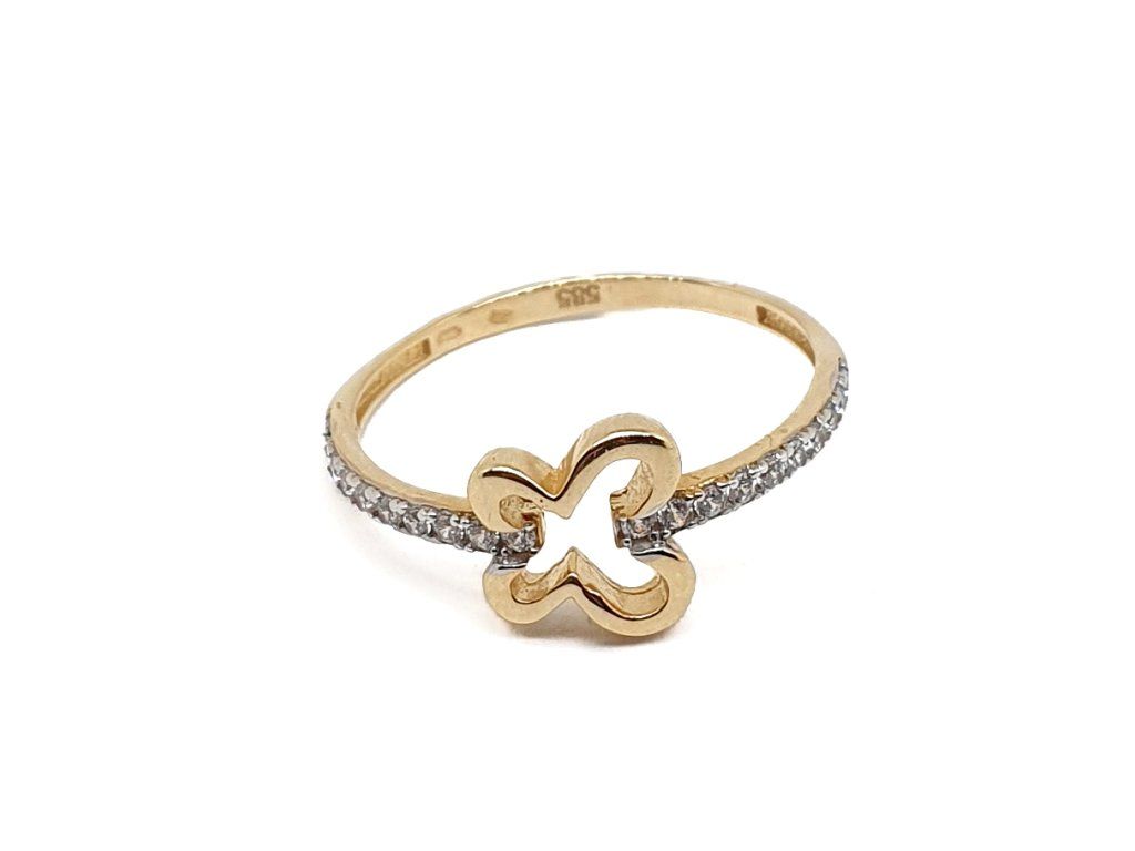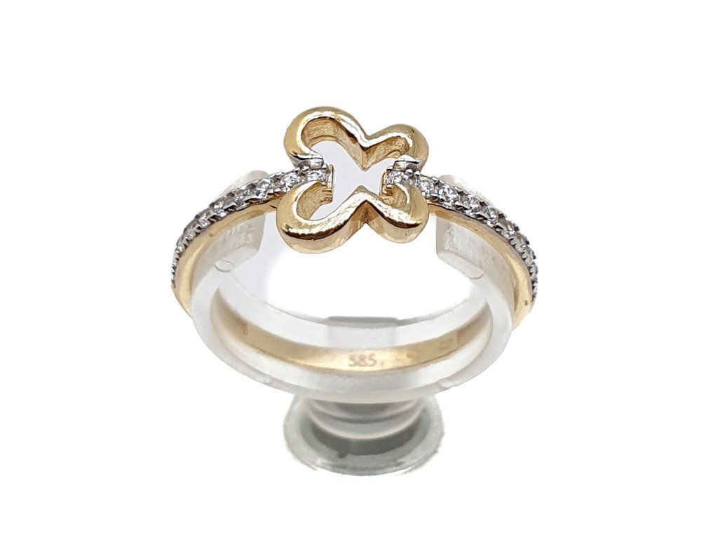 Zlatý 14kt prsten se čtyřlístkem a zirkony
