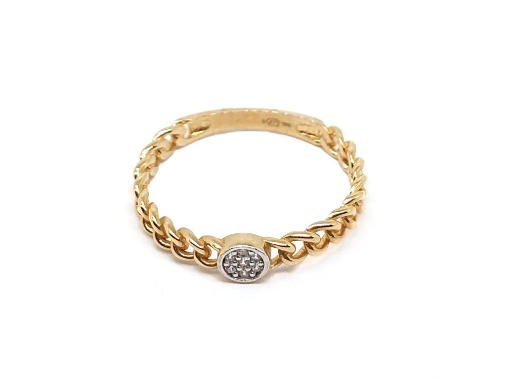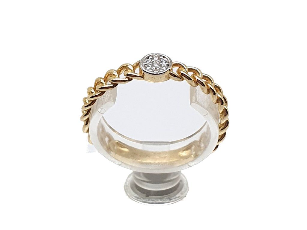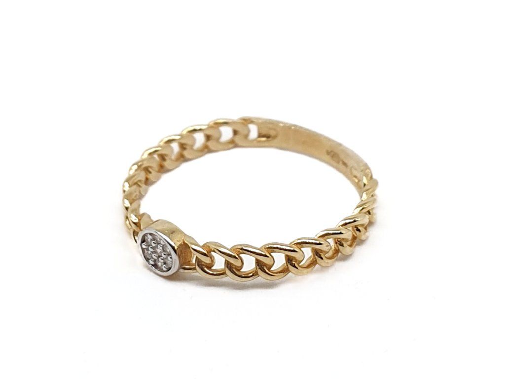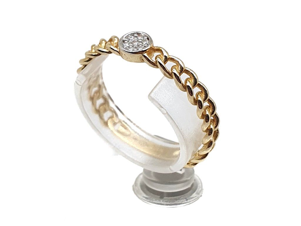 Zlatý 14kt prsten v řetízkovém designu se zirkony