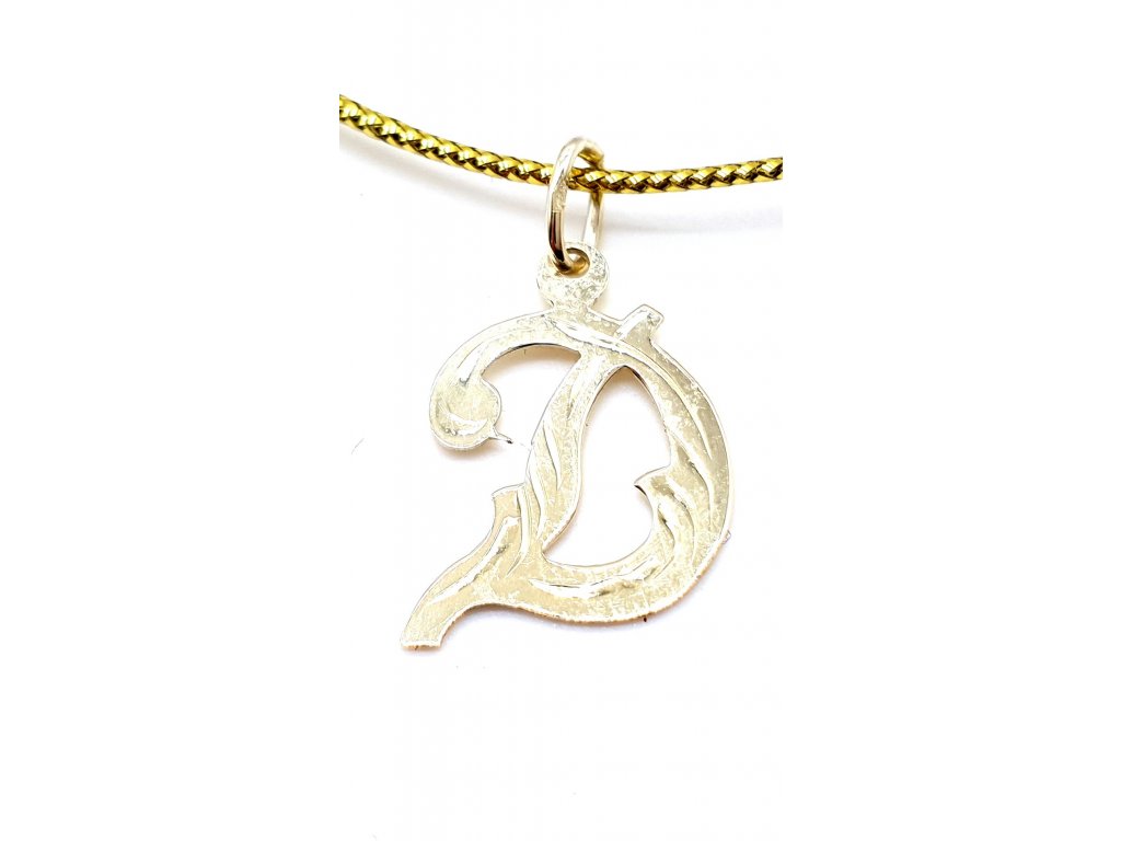 Zlatý přívěsek ve tvaru písmene D. Vyrobeno ze zlata ryzosti Au 585/1000.