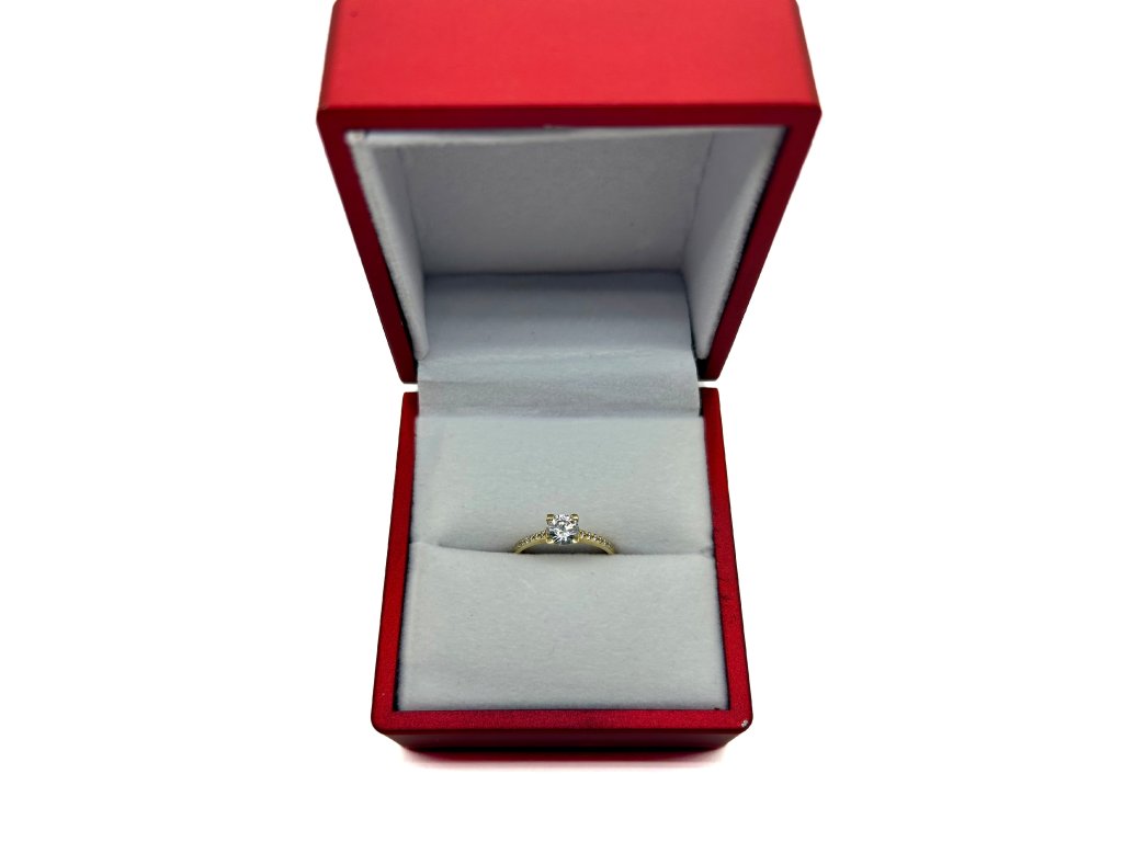 Tento snubní prsten ze 14karátového zlata kombinuje nadčasový design s jemným třpytem čirého zirkonu. Díky své lehkosti a preciznímu zpracování je ideální pro každodenní pohodlné nošení.