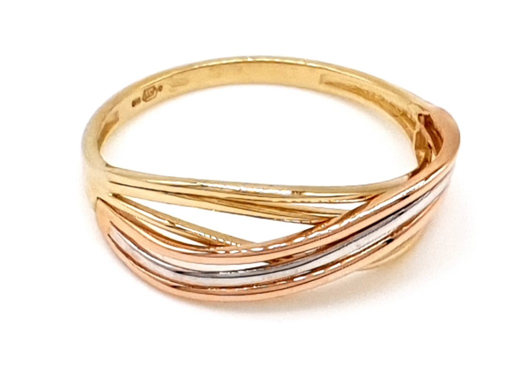 Zlatý vlnivý prsten ze žlutého a růžového zlata.