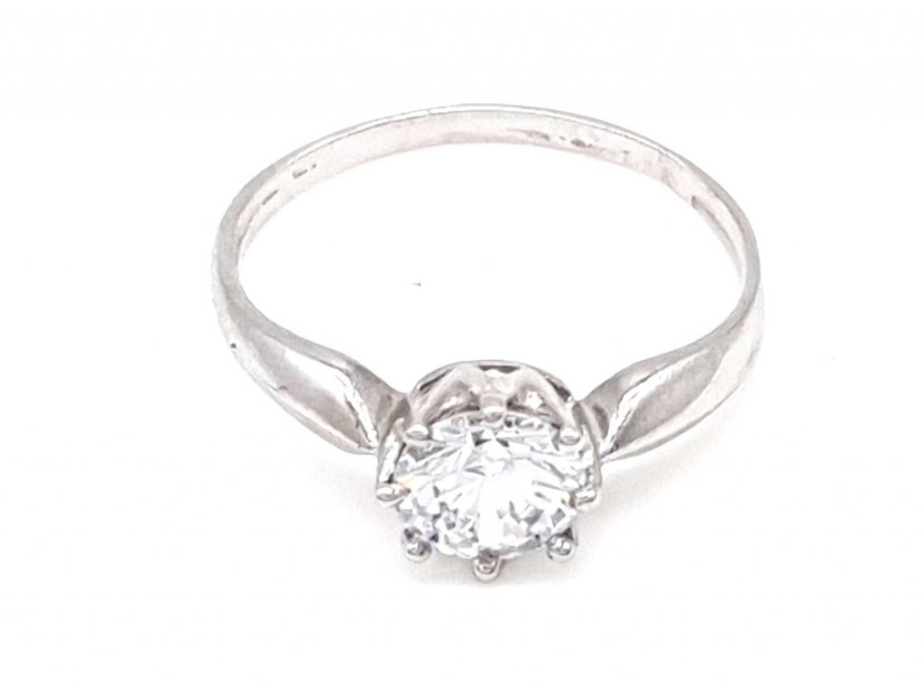 Zlatý zásnubní prsten se zirkony z bílého zlata